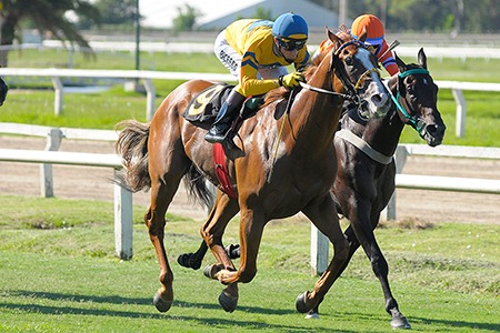 Hijo de Giant´s Causeway (Storm Cat) se lleva Condicional (1200m-Pasto) para machos de 3 años no ganadores que se disputó en el Hipódromo de Palermo. Criado en el Chenaut y montado por Jorge A. Ricardo, aventajó por ¾ cuerpo a Es De Gala (Espaciado), en tercer lugar llegó Señor Cartwright (Don Incauto) a 1½ cuerpo y en cuarto lugar Danilo Night (Caribean Night) a 2¼ cuerpos. El defensor de los colores del Stud Marias Del Sur es preparado por Ruben A. Quiroga, registró 1.09.18 para la distancia, pagando 4.40 a ganador.